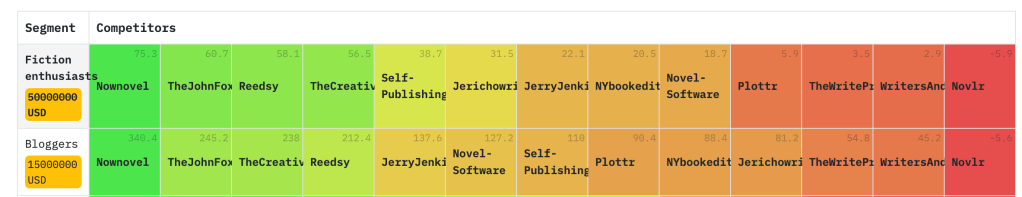 The true nature of such tools is revealed during a demonstration. I was given a tour around the product by one of the founders. We used Now Novel as a test case which helped me understand how Segmentable functions with real products and competitors I’m familiar with. Although I may come across as very positive in this review there are no affiliate links and my perspective is transparent:)