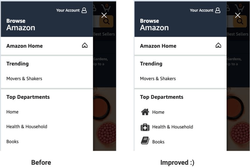 One of the patterns that has worked for me is trying to get more people to use navigation through making it easier to scan. 𝗚𝗿𝗮𝗽𝗵𝗶𝗰𝗮𝗹 𝗻𝗮𝘃𝗶𝗴𝗮𝘁𝗶𝗼𝗻 has many applications; using images/icons to explain categories, using graphic images for promos (especially if you’re using mega menus) or seasonally focussed graphic icons.