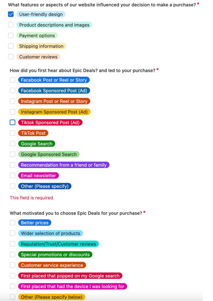 – 𝗔𝘁𝘁𝗿𝗶𝗯𝘂𝘁𝗶𝗼𝗻 𝗶𝘀𝘀𝘂𝗲𝘀: if you want attribution on marketing spend, use analytics not survey feedback. You’ve got enough of a war on analytics of whether the first, last or any subsequent click was more important, but at least you can get a revenue to channel match.
