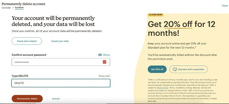 I was closing down a Mailchimp account and I noticed some trademark loss aversion elements on the page: